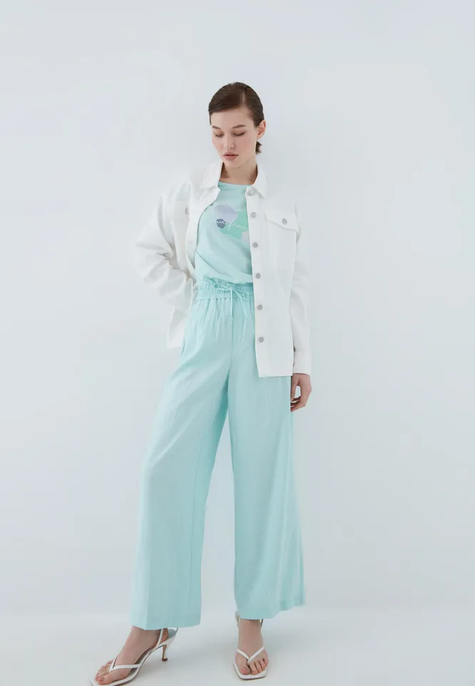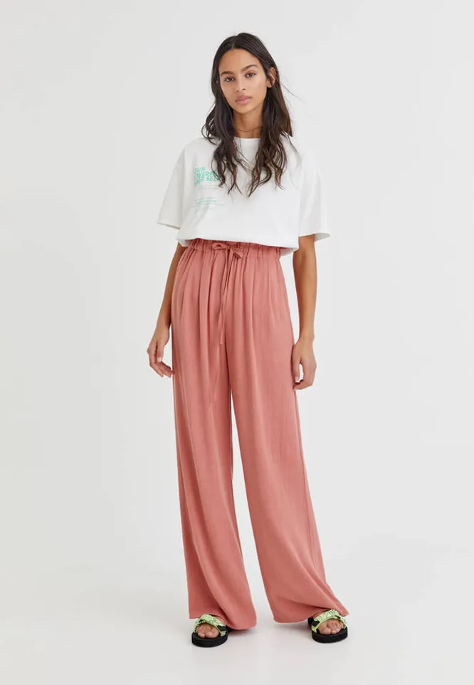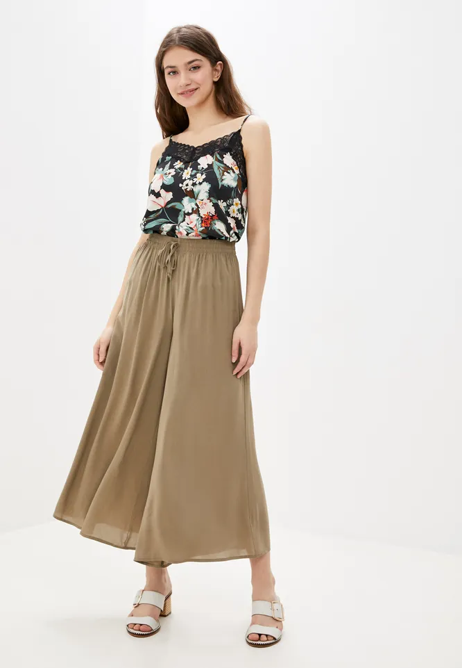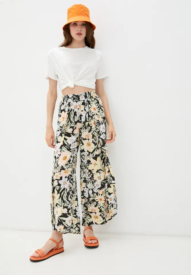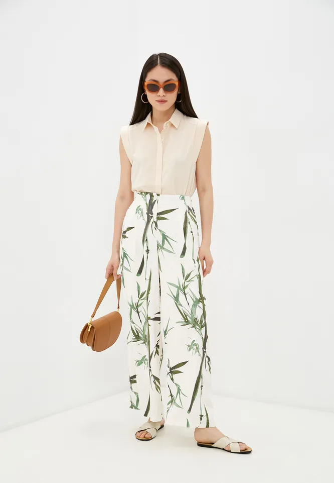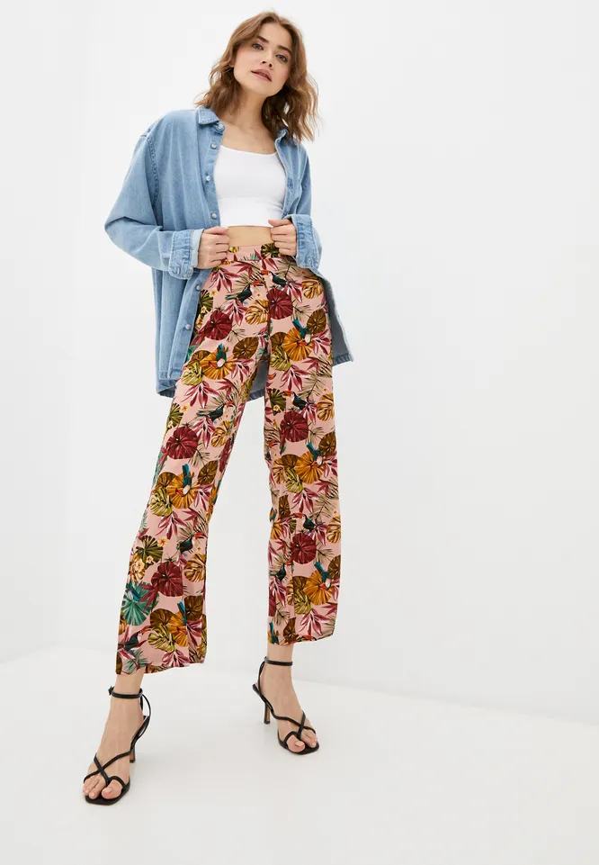 Что касается цвета, то ориентируйся на светлую гамму: бежевые, белые, пастельные оттенки – то, на что стоит обратить особое внимание. Если хочется чего-то яркого и пестрого, то присмотрись к брюкам с цветочными и тропическими принтами.