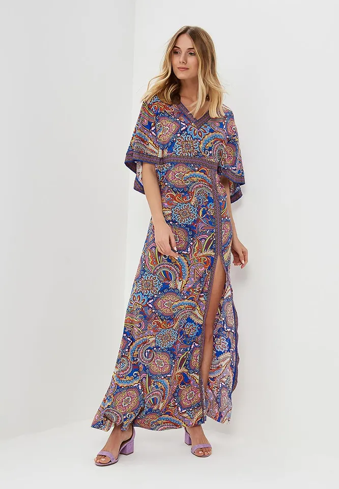 И еще один вариант платья-туники, на сей раз в пол и так же в яркой гамме.