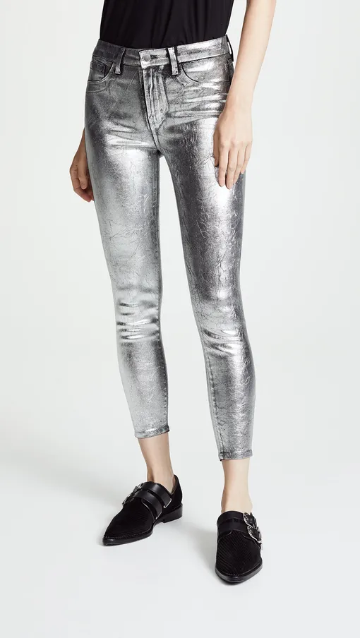 Какая рок-звезда обойдется без необычных и эффектных брюк? Мы предлагаем обратить внимание на популярные в этом сезоне джинсы с металлическим блеском.