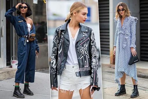 Главным элементом стиля гранж, который присутствует практически во всех образах, являются грубые ботинки на тракторной подошве. Их можно смело сочетать с платьями, юбками и, например, с комбинезонами.