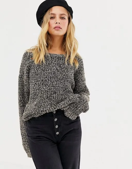 Серый джемпер с пушистой бахромой идеально впишется как в повседневный образ, так и в наряд для вечеринки с друзьями. Несмотря на довольно простую расцветку, модель не смотрится скучной. Носи ее с джинсами черного цвета в рок-н-ролльном стиле и грубыми ботинками на шнуровке.