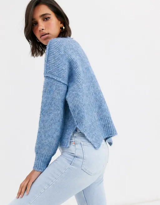 Небесно-голубой джемпер свободного кроя найдет общий язык как с любимыми джинсами на каждый день, так и с длинной юбкой А-силуэта. Модель отлично греет в мороз, при этом не кажется слишком объемной, а значит, ты легко поместишься в ней даже в узенький пуховик или приталенное пальто.