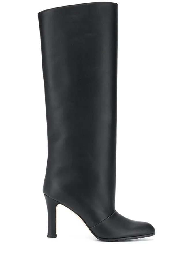Поклонницам каблуков советуем обратить внимание на самый модный вариант этого сезона — kitten heel. Небольшой каблучок обеспечивает правильное расположение стопы в обуви, дарит чувство устойчивости и выглядит изящно и утонченно. Носим высокие сапоги с kitten heels как с чем-то подчеркнуто элегантным, так и на контрасте с одеждой другого стиля, например с джинсами или джоггерами.