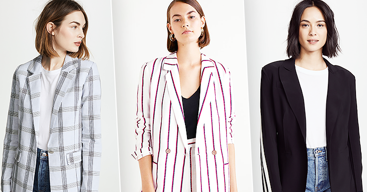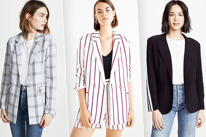 Полосатый удлиненный жакет надень на коктейльную вечеринку. Его ты можешь сочетать с шортами или узкими джинсами.