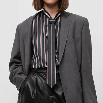 Вау-эффект зависит от длины «вшитого» шарфа. Чем от длиннее, тем, конечно, театральнее смотрится рубашка и наряд в целом. А если к стритстайлу ты не готовишься и хочешь лишь немного освежить приевшиеся комбинации, выбирай рубашки с аккуратным шарфом или галстуком: небольшой стильный акцент внимание на себя не перетянет, но сделает наряд интереснее – это уж точно.