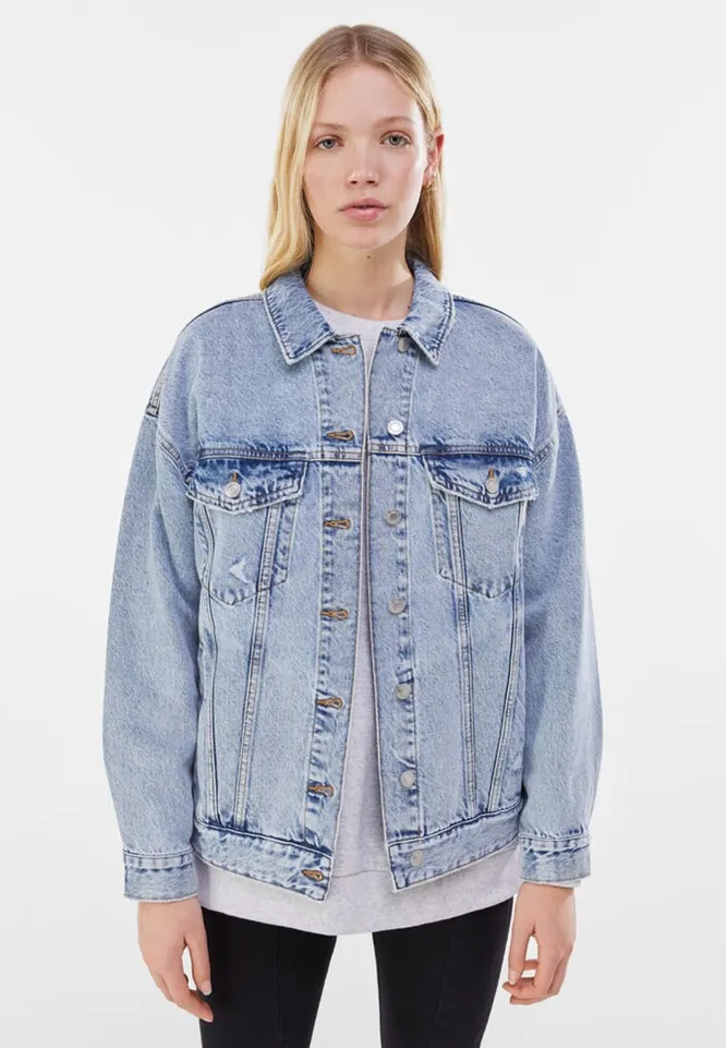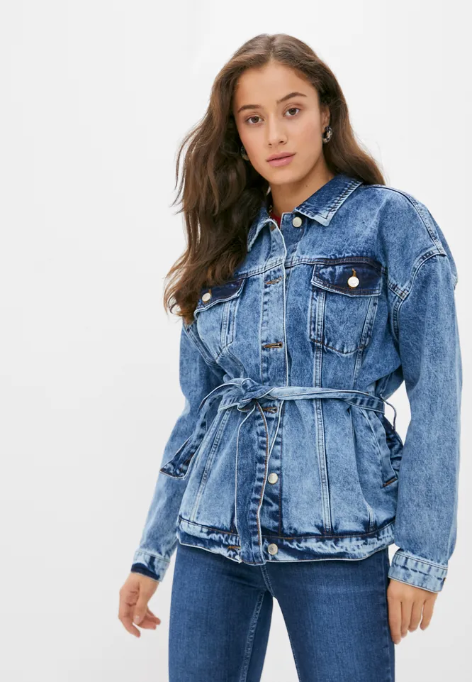 Удлиненная джинсовка слегка свободного кроя гармонично дополнит ансамбль с джинсами и свитшотом, повседневными брюками и рубашкой, трикотажным костюмом, джоггерами и худи.