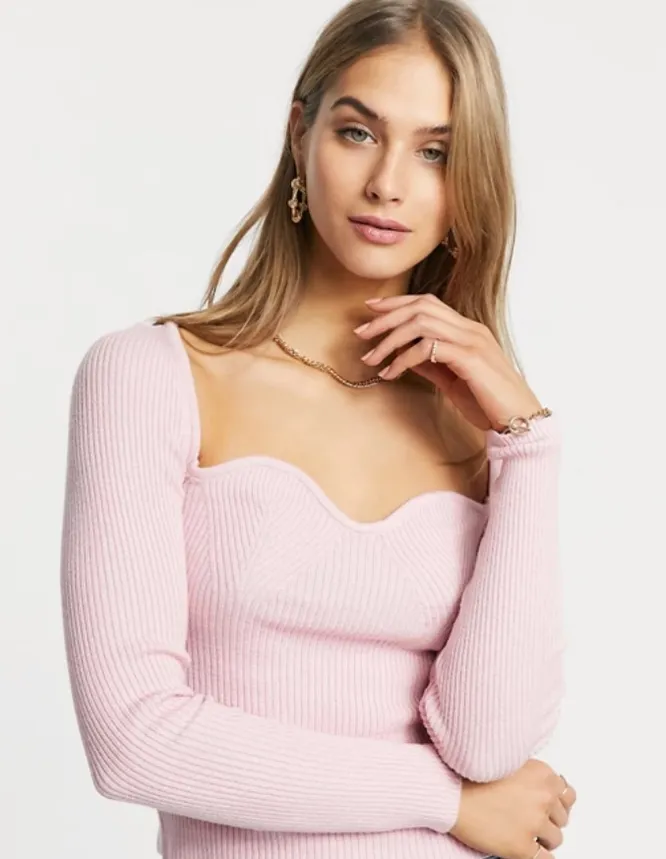 Хит сезона — топ в рубчик с вырезом «сердечко».
