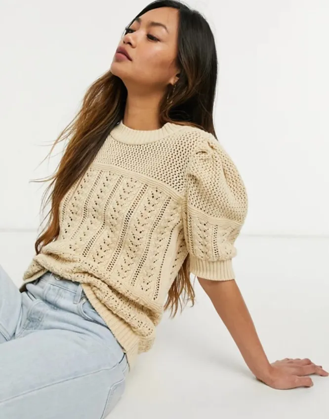 Стильной альтернативой любой футболке станет ажурный джемпер с коротким рукавом.