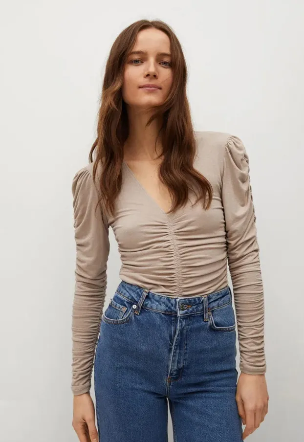 Добавить образу фактурность и динамику поможет лонгслив со сборками — идеальное дополнение к джинсами. плиссированным юбкам и костюмам-двойкам.