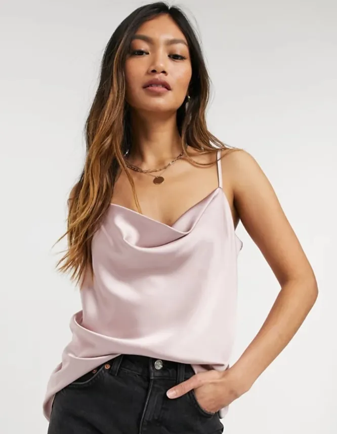 Атласный топ бельевого стиля станет нарядной нотой в повседневном, деловом или вечернем образе. Он отлично смотрится с кожаными юбками, струящимися брюками палаццо, строгими костюмами.