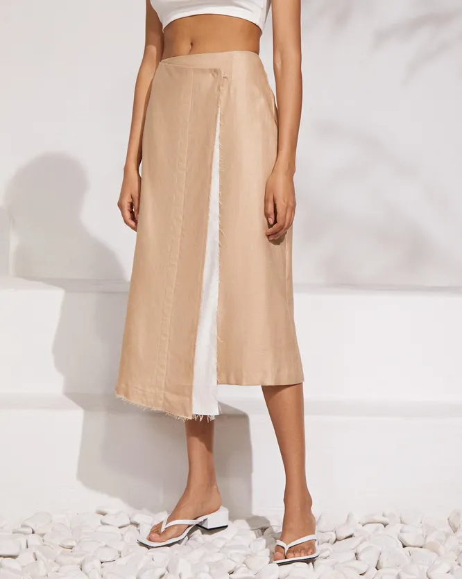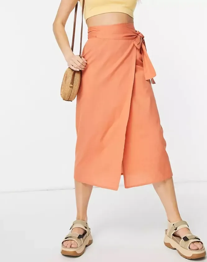 Если тебе близок скандинавский минимализм в одежде — присмотрись к льняной асимметричной юбке с запахом. В ней комфортно в жару. Дополнить ее можно структурированной футболкой или струящейся блузой.