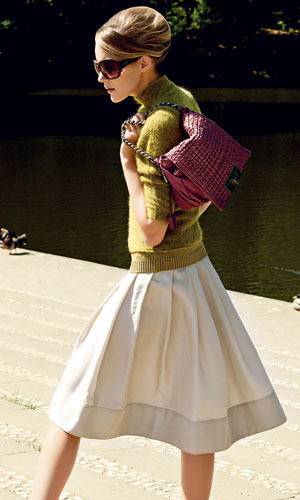 Ах, до чего же хороша эта девушка! И тебе нравится этот образ? Тогда срочно отправляйся обновлять гардероб.Твой выбор – вещи карамельных оттенков и большие очки в стиле 60-х. Осталось сделать прическу типа «Бабетта». И – автобусы в ряд и гудят машины... Леди, как вас зовут?