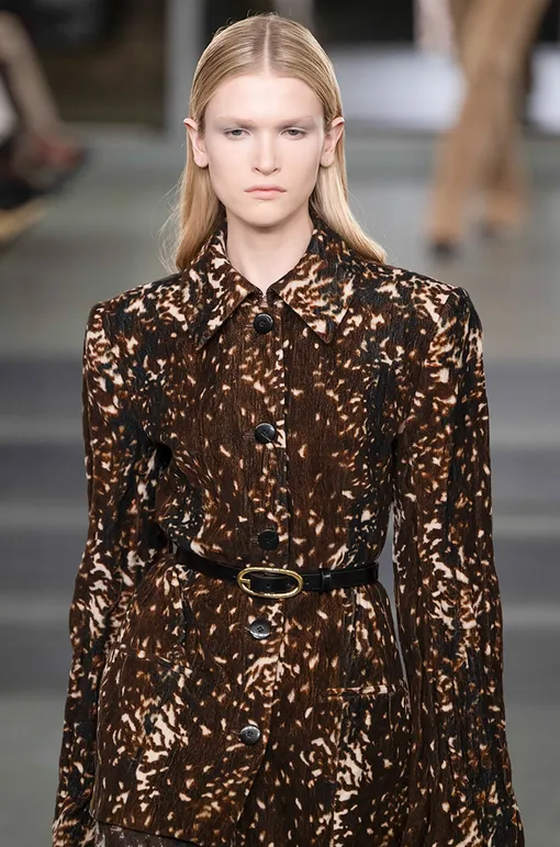 Откуда же о нем узнали модницы стритстайла? Олений принт не был самым громким трендом на подиумах, но появлялся у нескольких брендов: Tory Burch, David Koma и Brandon Maxwell, а 032с показали его даже на мужском пальто. Далее принт подхватили более демократичные бренды и постепенно массмаркет.