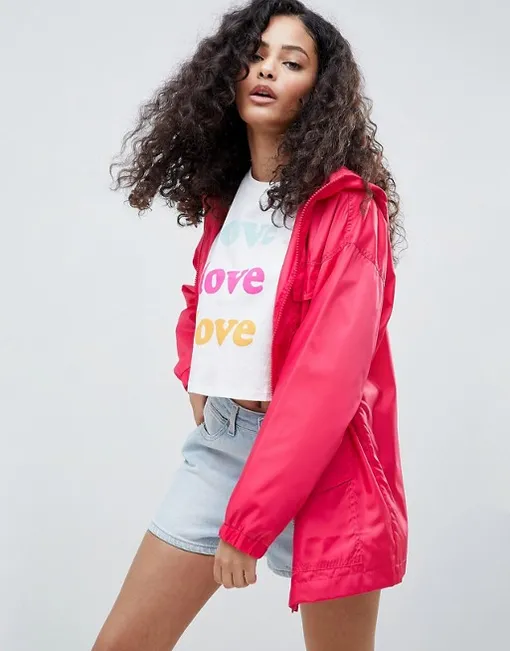 Яркий дождевик цвета фуксии послужит акцентом в твоем повседневном образе. Надевай его, чтобы не промокнуть, когда на улице ливень, и поднять настроение в пасмурную погоду.