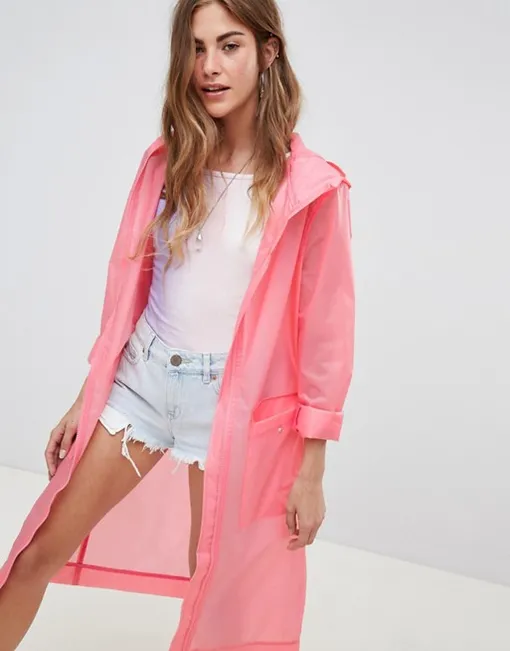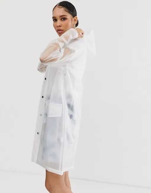 Если ты модно оделась для прогулки, а на улице внезапно пошел дождь — не переживай. Полупрозрачный удлиненный дождевик не даст тебе промокнуть. Кроме того, в нем все смогут рассмотреть твой наряд.