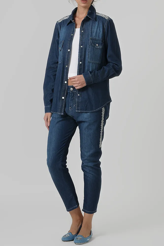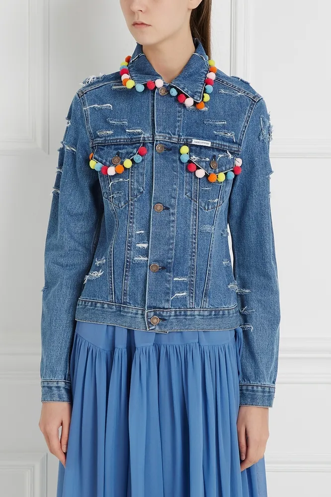 Еще один «джинсовый тренд» — всевозможный декор. Если ты любишь вещи «с акцентом», присмотрись всё к тем же джинсовым курткам с помпонами, клепками и прочими декоративными элементами.