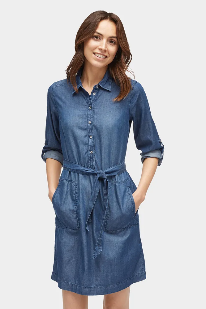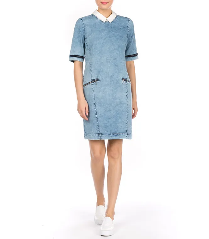 Актуальны самые разные варианты и модели — от платьев-рубашек до платьев-футляров из денима.