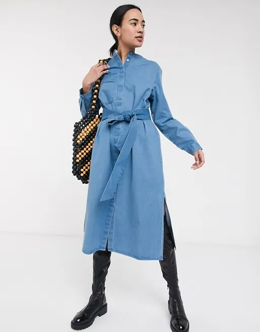 Джинсовые платья-рубашки из сезона в сезон не теряют своей актуальности, а все потому, что подходят на любую фигуру и позволяют визуально скорректировать ее пропорции. Если хочешь казаться выше, оставь несколько верхних пуговиц расстегнутыми, чтобы образовать вырез в форме буквы V. Подчеркни талию с помощью пояса, но не перетягивай ее — в образе должна ощущаться легкость.