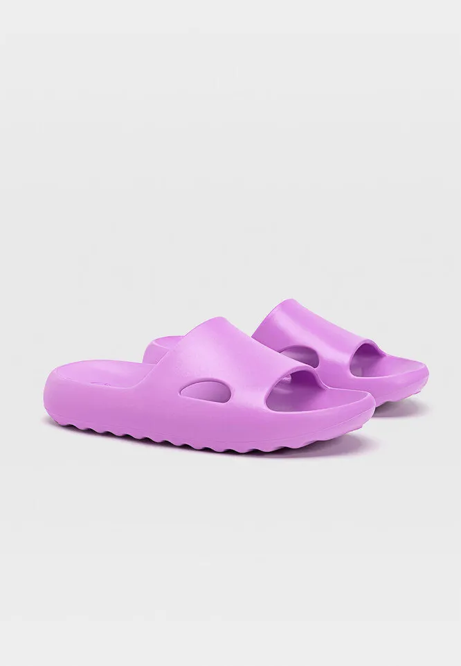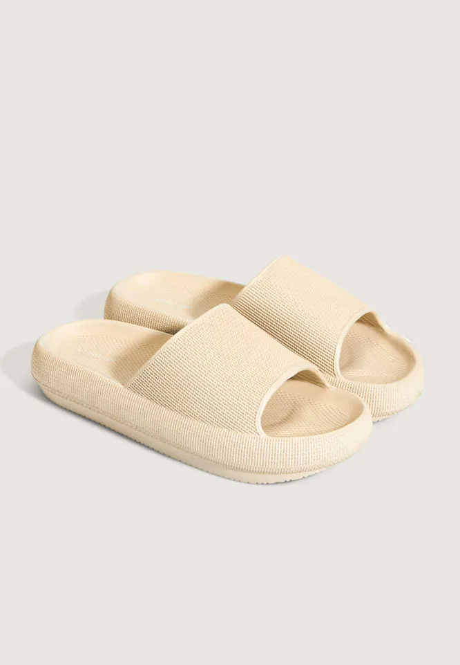 Еще один необычный тренд этого лета – массивные резиновые шлепанцы на толстой подошве. Они легкие (несмотря на свой вид), и в них удобно ходить по песку или гальке. Если ищешь что-то акцентное, присмотрись к паре цвета фуксии. Тем, кто предпочитает нейтральные оттенки, подойдут бежевые шлепанцы.