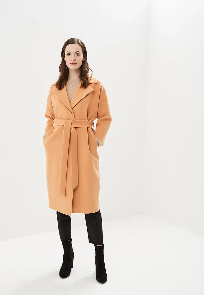 Персиковое пальто может разнообразить весенний гардероб и сделает образы более яркими. Чтобы подчеркнуть этот необычный для верхней одежды цвет, советуем носить пальто с белыми брюками и красной сумкой.