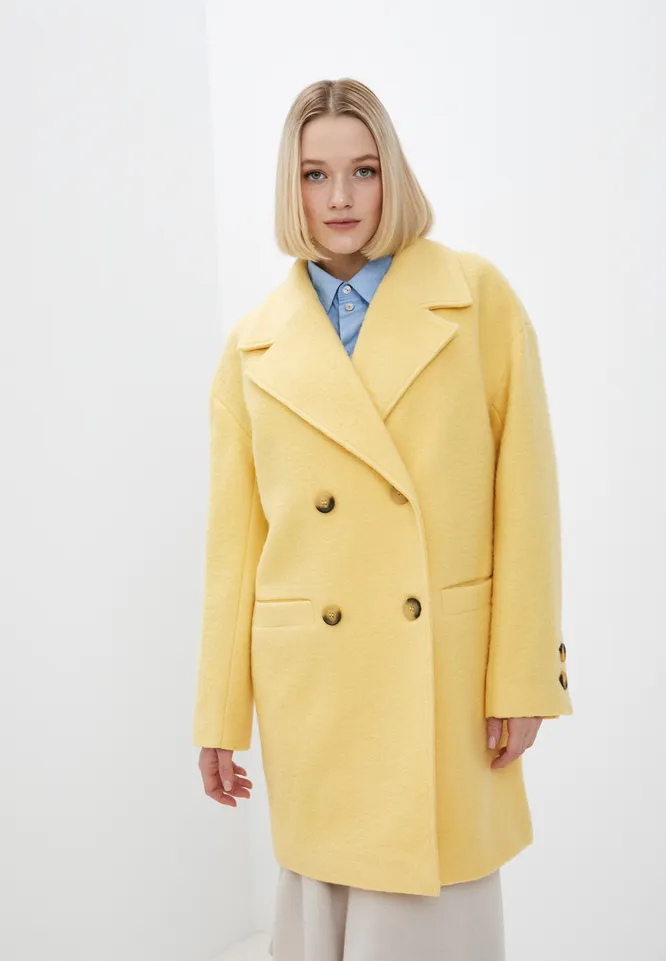 - Яркая база: пастельное пальто отлично смотрится поверх яркого брючного костюма, платья или джемпера и юбки.