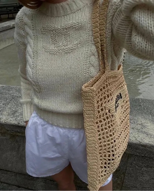 Плетеный тоут Prada вышел в продажу 2 сезона назад, но мастхэвом лета стал именно сейчас. Модные блогеры скупают эту простую сумку сразу же, как на сайтах появляются новые цвета. Сейчас в фаворитах песочные и желтые модели, которые по популярности соперничают с плетеными корзинкам — еще одним летним трендом. Они, кстати, тоже появились не в этом году, но триумфально вернулись.