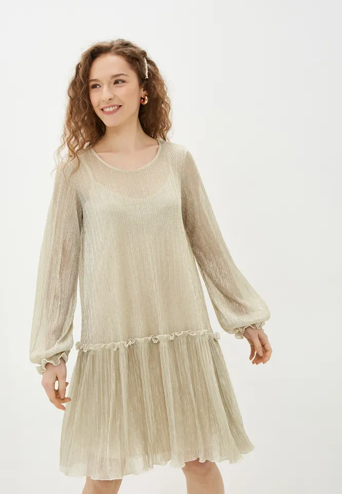 Нежное платье из шифона с длинными рукавами и заниженной талией цвета айвори превратит тебя в настоящую городскую принцессу. На вечеринку надевай его с блестящей обувью и нарядными аксессуарами для волос. В будни – с расслабленным жакетом или курткой-рубашкой и грубыми ботинками на шнуровке.