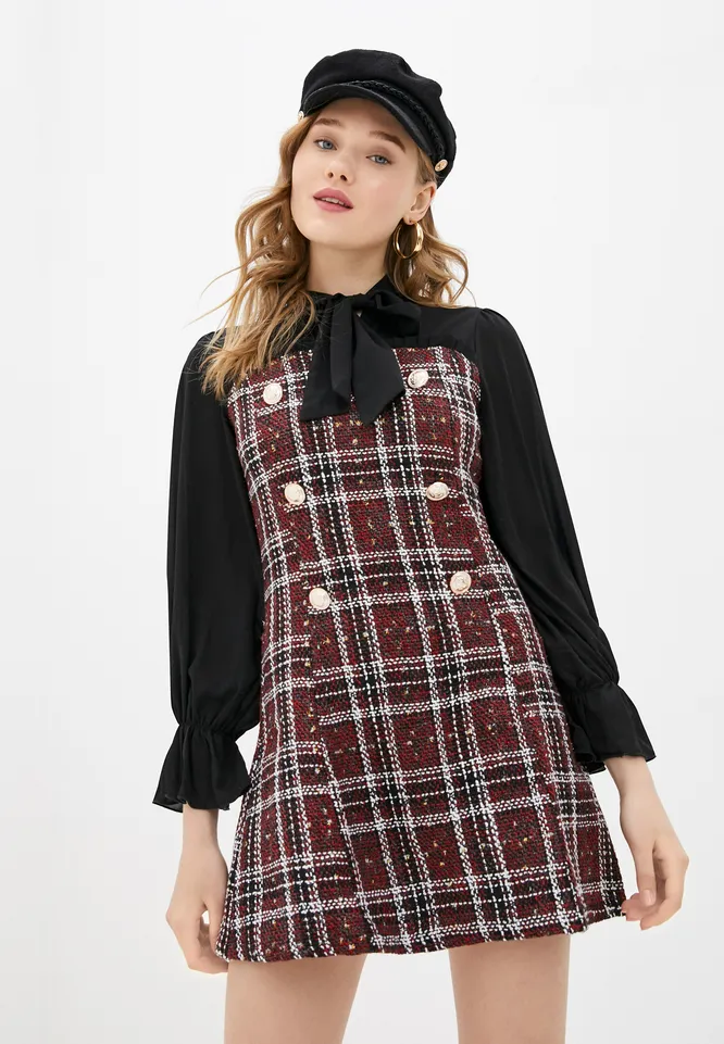 Комбинации контрастных фактур всегда смотрятся интересно и очень стильно, поэтом советуем присмотреться к платьям-футлярам с объемными полупрозрачными рукавами. Например, это платье из твида со струящимися рукавами можно надеть на учебу или в офис с плотными колготками и жокейскими сапогами. Оно органично смотрится с бархатными ободками и лаконичными кожаными сумками прямоугольной формы.