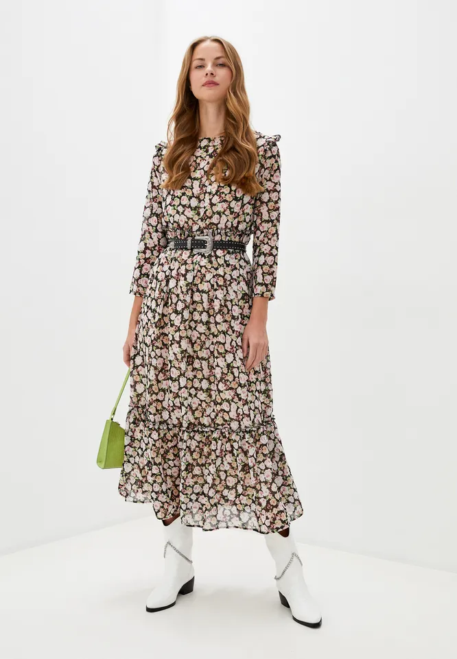 Добавь немного романтики и флористических мотивов осенне-зимним образам с помощью этого длинного шифонового платья. С чем его носить? Например, с казаками, ремнем и шляпой в стиле вестрен. Более женственный ансамбль получится, если надеть его с облегающими замшевыми сапогами на каблуке и дополнить аутфит изящным кулоном и миниатюрной сумочкой-торбой. В холодное время года такое платье стоит носить с длинной верхней одеждой. В этом смысле идеально подойдет пальто макси расслабленного кроя или шуба из экомеха.