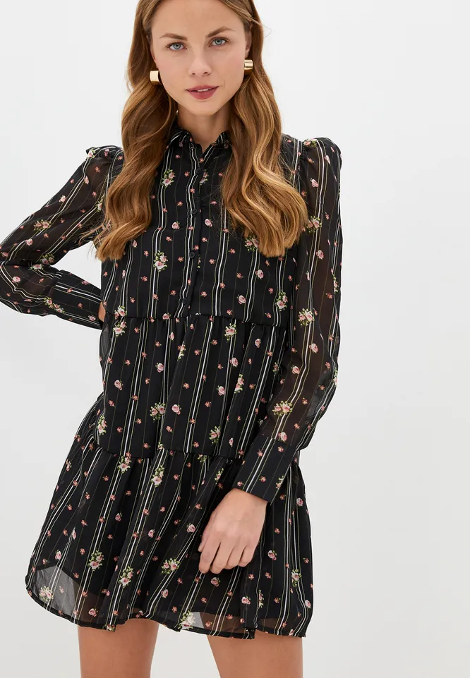 Еще один романтичный вариант на каждый день – шифоновое платье с длинным рукавом и цветочным принтом. Носи его с плотными черными колготками и жокейскими сапогами, чтобы создать женственный лук. В качестве аксессуаров выбирай аккуратные серьги, объемный ободок и кросс-боди средних размеров. Поверх всегда можно накинуть пиджак оверсайз, который создаст модный контраст женственности и маскулинности.