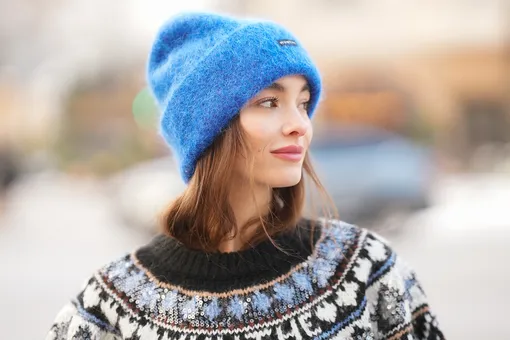 Стиля и яркости можно добавить с помощью аксессуаров в портретной зоне: шапка, шарф, очки, серьги. Либо более безопасным способом: сумка, ремень, обувь или даже просто носки. Синий не перегрузит повседневный гардероб, но добавит в него чуть больше энергии.