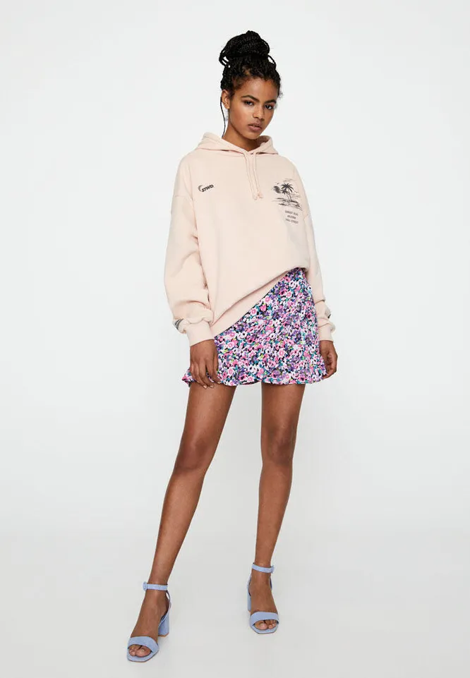 Ты можешь носить худи как с джинсами и брюками, так и дополнять им образы с юбкой или платьем. Этим летом попробуй обыграть с его помощью наряд в романтическом стиле. Надевай цветочное платье или юбку, а наверх накидывай худи спокойного оттенка. Дополняй композицию лаконичными кедами и спортивной сумкой — твой идеальный образ для прогулки готов.