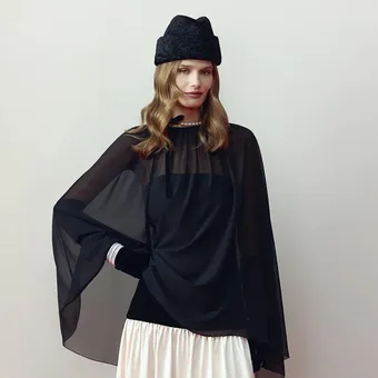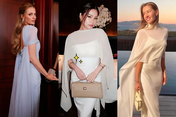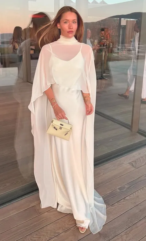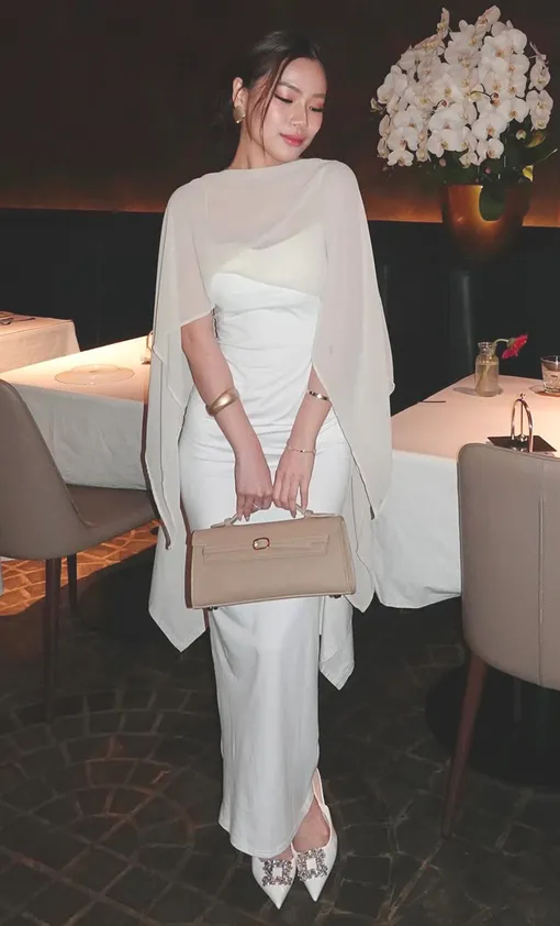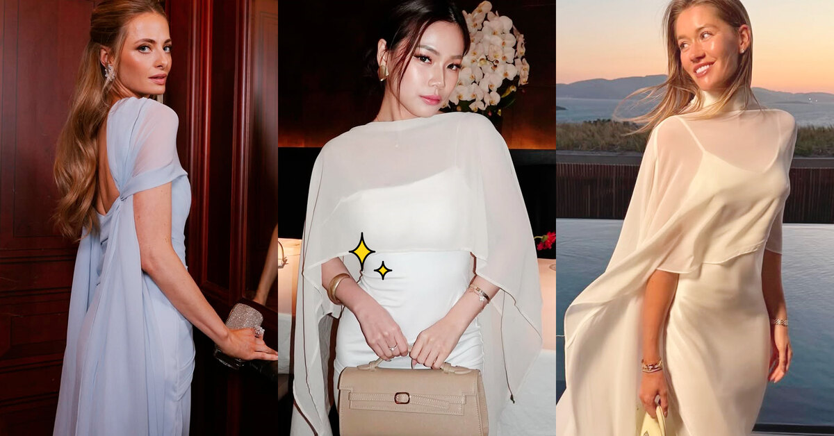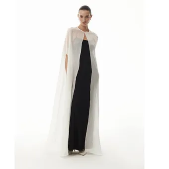 Модные инфлюэнсеры через одного (если не каждый первый) показывают свои праздничные луки с кейпами. Самые традиционные платья – шелковые комбинации, строгие футляры, платья-колонны – выглядят абсолютно сказочно, если накинуть поверх них полупрозрачный кейп. Будто дымка «обнимает» плечи – волшебство!