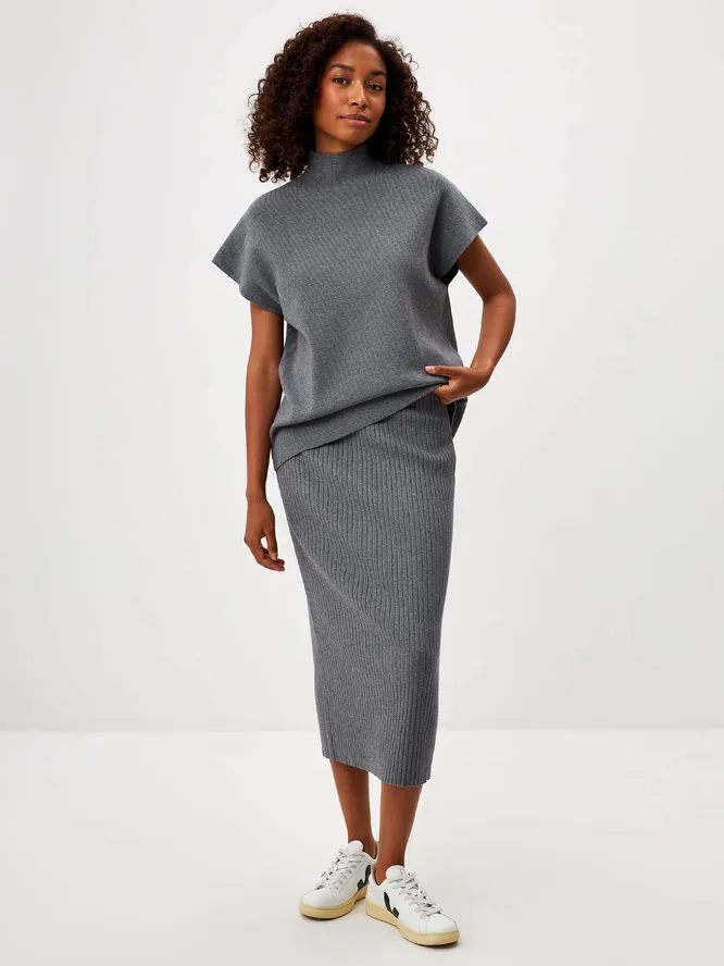 Комплекты с коротким рукавами мы точно выгуляем весной, но и сейчас им можно найти применение. Просто надень лонгслив под трикотажный жилет — многослойность согреет и добавит в образ изюминку.