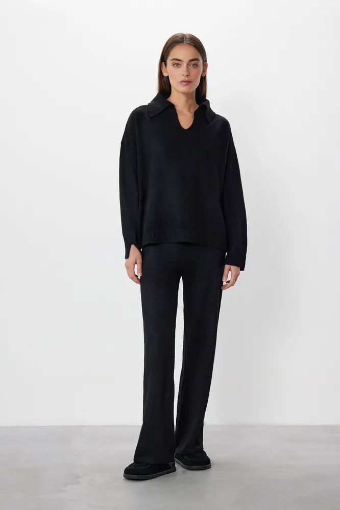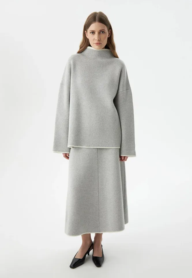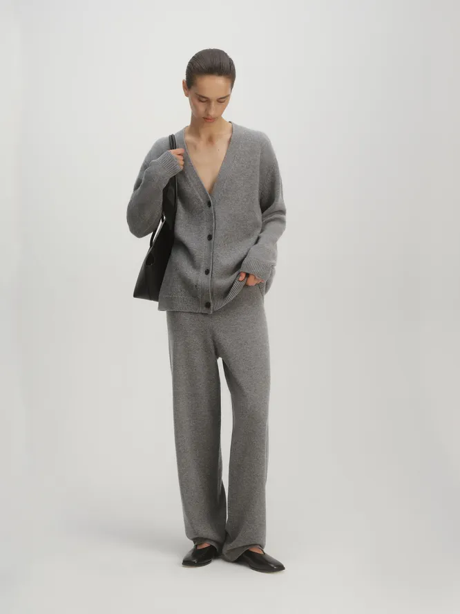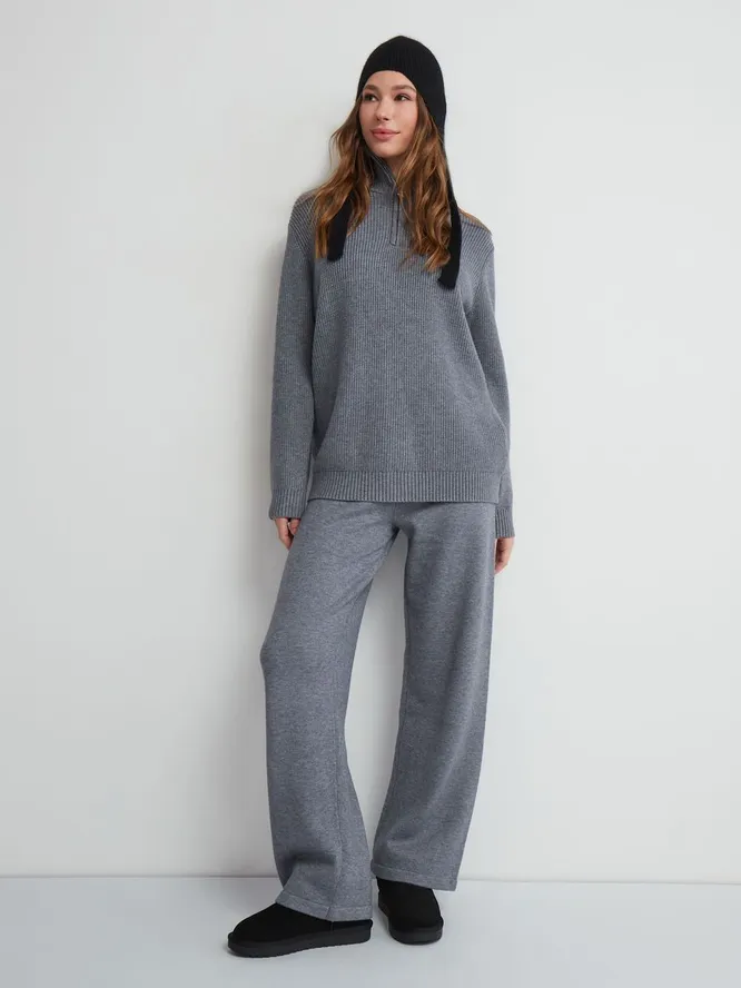Крой и посадка — еще один суперважный фактор при выборе обновки. Не обязательно искать дизайнерский трикотажный костюм, во многих некрупных брендах ты найдешь достойные комплекты — их можно вычислить по деталям. Например, по вшитым отворотам на брюках, утолщенному круглому вырезу, наличию рубчика на нижнем крае свитера — такие нюансы делают трикотаж более аккуратным и «дорогим».