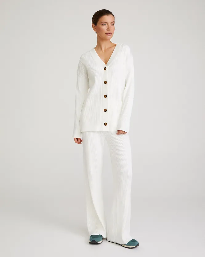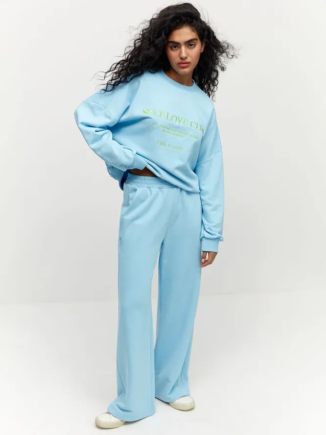 Давай теперь пробежимся по нашей подборке со стильными современными костюмами из трикотажа. Первый лот — комплекты с модными широкими брюками, которые ну очень удобно носить. Комбинировать можно с ботинками, уггами дутиками — удобнее сочетания просто нет.