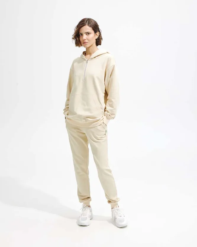 Цветные вставки на трикотажном костюме тоже редко идут ему на пользу. Не спорим, лампасы, контрастные полоски и шнурки иногда смотрятся круто, но только в том случае, если крой и палитра в целом максимально базовые. Трикотажный костюм с карманами относится к этой же серии: если карманы не становятся акцентом и выглядят аккуратно, то почему нет?