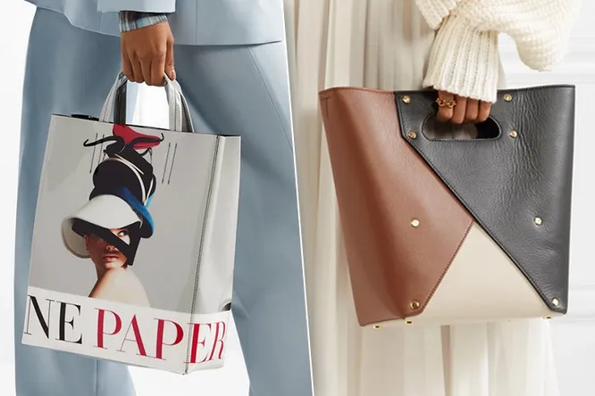 И сумки жесткой формы, повторяющие геометрические фигуры (пакет они тоже напоминают).