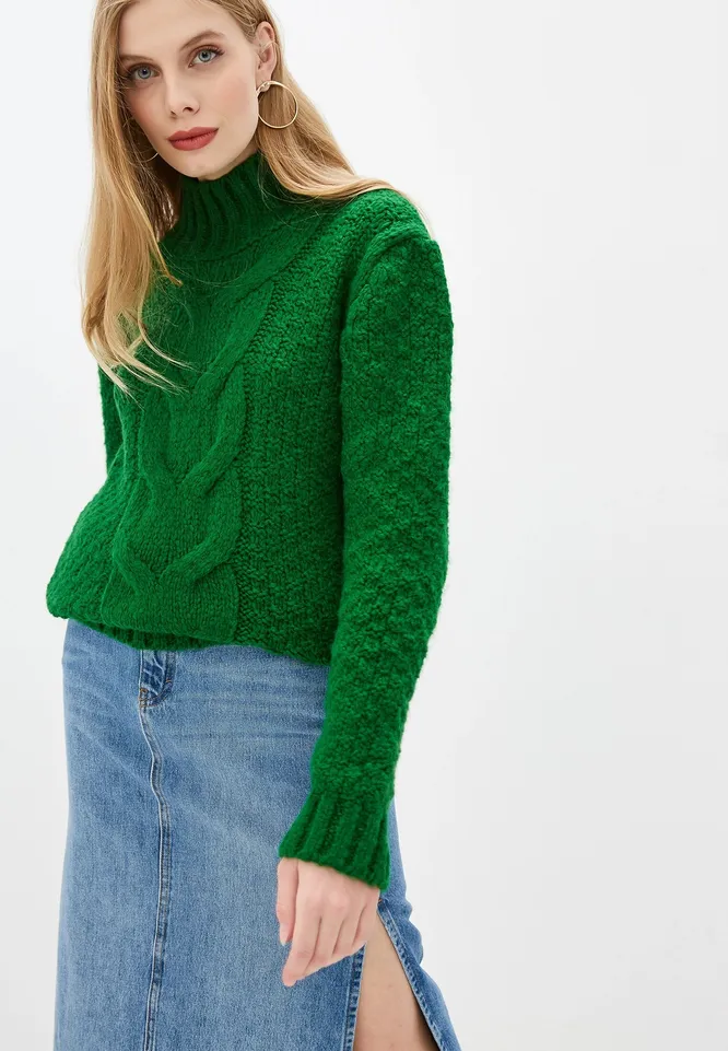 Глубокий, насыщенный оттенок, который подойдет девушкам с теплым цветотипом. Такая модель круто смотрится с джинсами и не менее гармонично сочетается с костюмами в офис. Зеленый цвет ткани кажется достаточно сдержанным, так что ты сможешь подружить этот свитер даже с яркой одеждой.