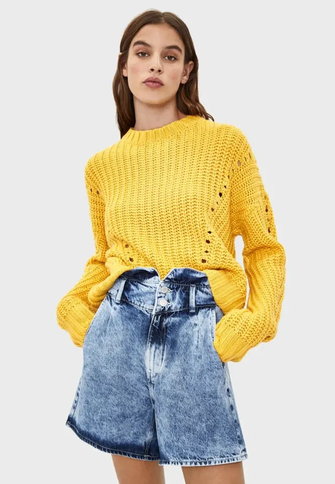 Если тебе не хватает солнца — смело выбирай свитер яркого желтого оттенка. Он задаст настроение в образе и поможет оживить даже самый простой наряд. Носи его на каждый день с джинсами, а по особым дням сочетай с юбками миди летящего кроя.