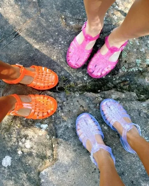 Представь: лето, во дворе лужи после дождя, выходишь семилетняя ты — королева площадки в блестящих «мыльницах» с перламутровым отливом. Эти резиновые босоножки казались в детстве верхом стиля – даже жаль, что потом они на долгие годы превратились в ироничный символ дачного шика.