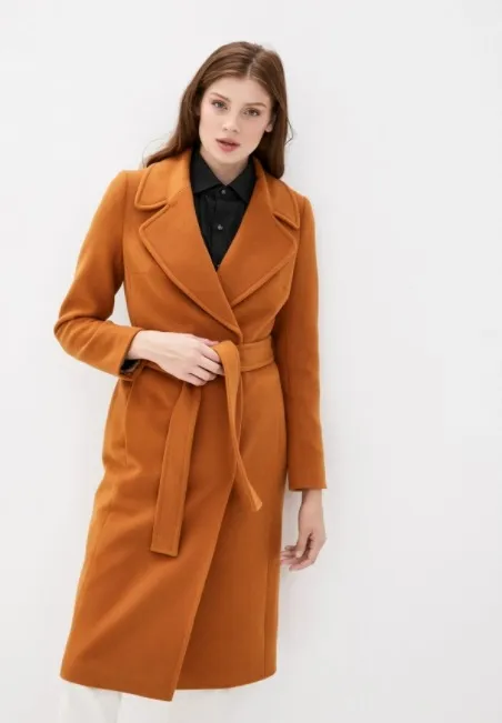 Еще один яркий цвет в осенней палитре – янтарный. Он не такой сочный как чистый оранжевый, но и не слишком базовый как песочный. Стильно смотрится в паре с коричневым, бордовым, темно-зеленым, красным, поэтому к янтарному пальто советуем подобрать обувь, сумку и теплые аксессуары в одном из этих цветов.