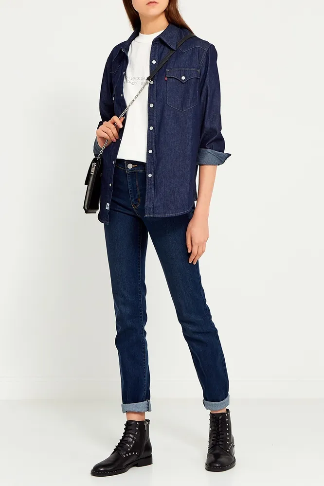 Джинсовая рубашка особенно хорошо будет смотреться вместе с темными скинни и белой базовой футболкой. В таком виде отправляйся на встречу с друзьями или на прогулку по парку.