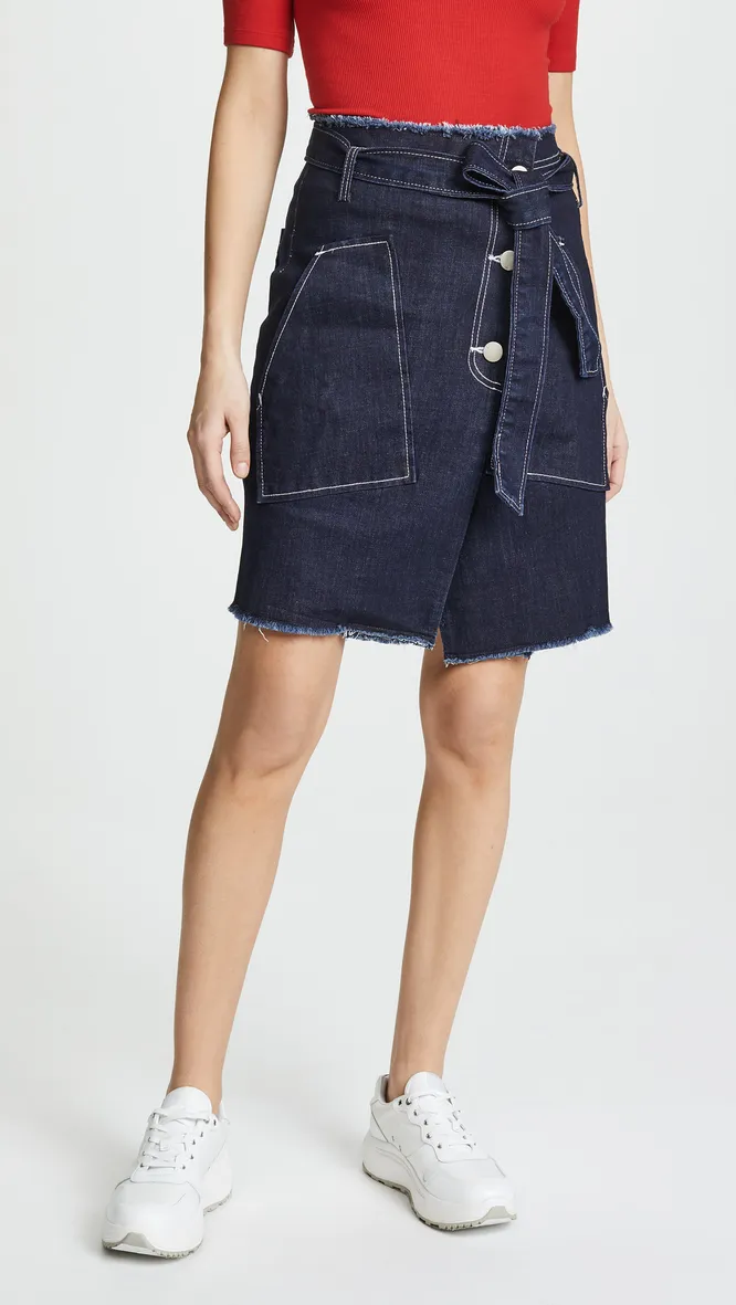 Асимметричная юбка из денима выглядит необычно и стильно. Сочетай ее с яркими полупрозрачными блузами, джемперами и кожаной косухой.