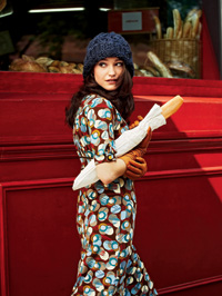Платье, Max&Co; шапка, Guess; перчатки, Celine; серьги, Monet