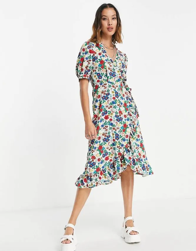 Мастхэв любого летнего гардероба — романтичное платье миди в цветочек. Эту модель можно дополнить белыми босоножками, маленькой сумкой и шляпой канотье.