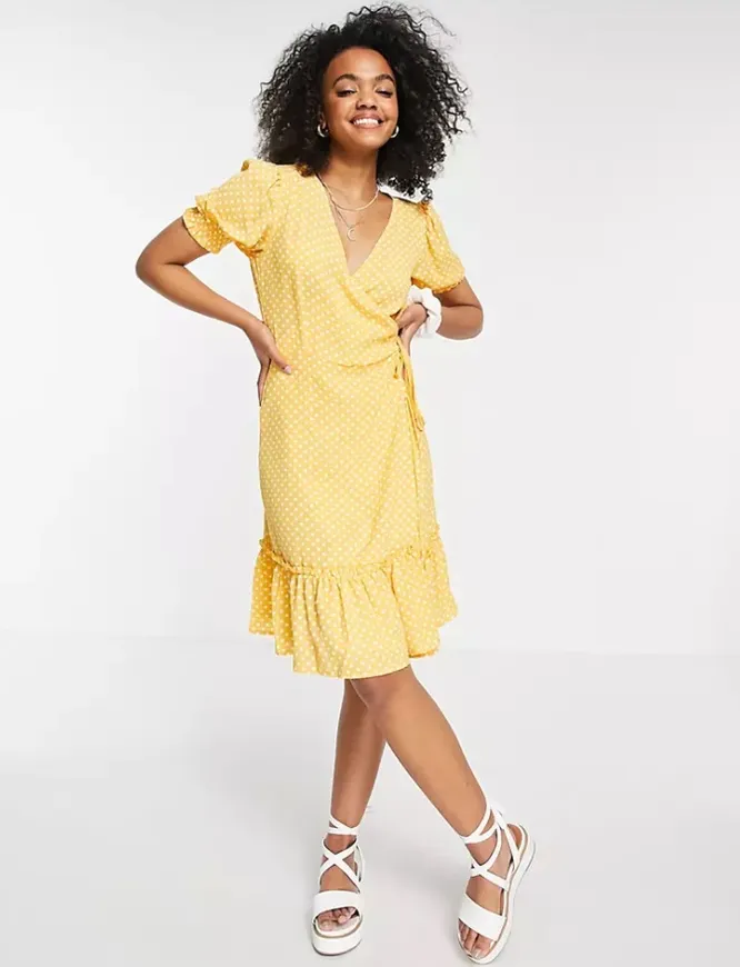 Polka dots — принт, который никогда не выйдет из моды. Желтое платье в горошек станет отличной основой для повседневного летнего лука. Дополни его босоножками или светлыми кедами и небольшой сумкой через плечо.