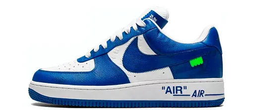 Самым известным творением Вирджила за время работы в модном Доме можно с уверенностью назвать коллаборацию с Nike, а именно – выход 9 расцветок легендарного силуэта Air Force 1. Louis Vuitton Nike Air Force 1 Low By Virgil Abloh White Royal на данный момент – самая бюджетная расцветка коллаборации.