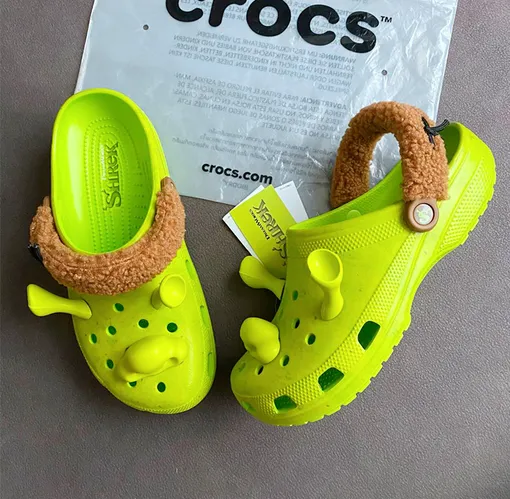Заключительная пара, которая в какой-то мере является шуткой, но все же имеет право на присутствие в данном списке – уникальная коллаборация самых известных тапочек в мире (кроксов) и самого известного в мире огра. Коллаборация Crocs и Dream Works произвела фурор еще с момента самого анонса, и пусть их стоимость так и не выросла выше 100$, но мохнатые тапочки с ушами и носом Шрека до сих пор являются одной из самых ярких коллабораций Крокс.