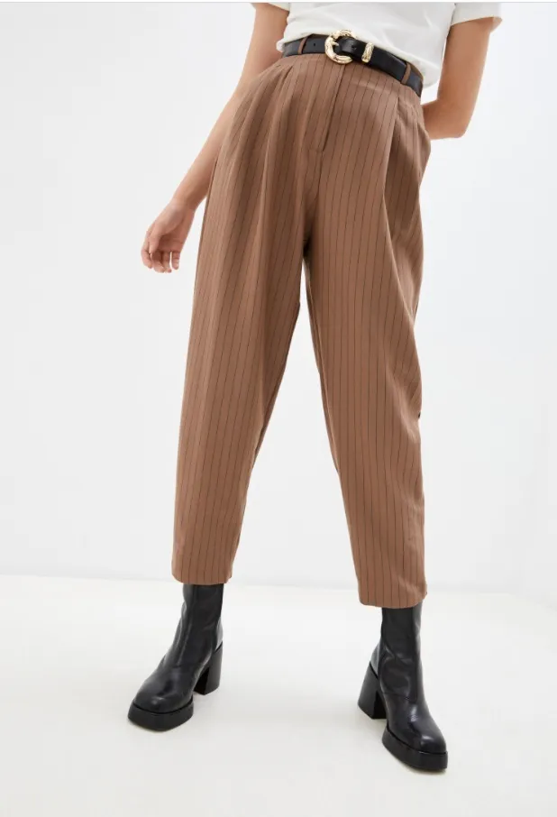 То, как брюки будут работать с твоей фигурой, зависит не только от фасона, но и от принта. Отличный выбор – модели в вертикальную полоску. Важный момент: узор должен быть соразмерным фигуре. То есть если ты полная, откажись от слишком тонкой полоски и выбери более крупную, и наоборот.